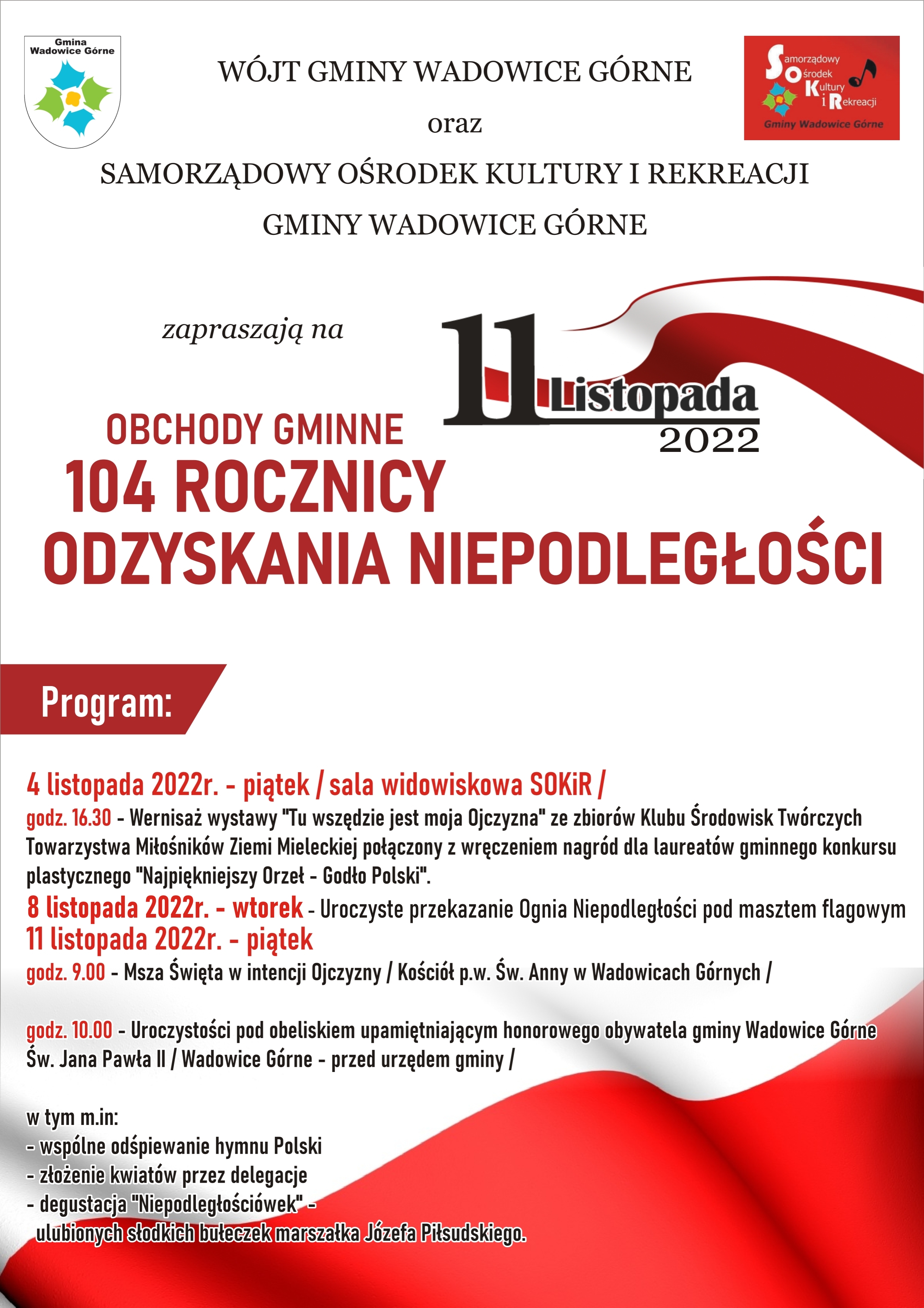11 listopada Obchody Gminne 104 Rocznicy Odzyskania Niepodległości